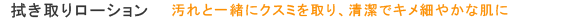 お顔全体に螺旋を描くように優しく伸ばし、クリームが柔らかくなりメイクや汚れと馴染んだらふき取りローションを含ませてコットンで優しく拭き取ります。キメの奥から汚れを浮かせ白く透明感のある柔らかな肌へ導きます。
