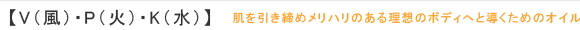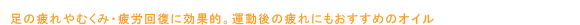 たくさん汗を出したい方向きのオイル。新陳代謝を良くしたり、柔軟効果のあるセイヨウネズエキスや鎮静効果のあるヒマラヤスギオイルなどをブレンド。ほてりを鎮め、使いすぎた筋肉をほぐします。 ピーナッツ油・ラベンダー油・オリーブ油・ベチベル根エキス・プロピルパラベン・テトラジブチルヒドロキシヒドロケイヒ酸ペンタエリスリチル